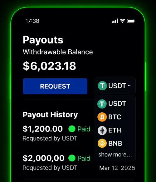 We never hold or control your money. All payouts are non‑custodial and sent directly to your crypto wallet through the blockchain. Once you request a payout, it is processed automatically. We cannot cancel it, stop it, or delay it. Every request goes through